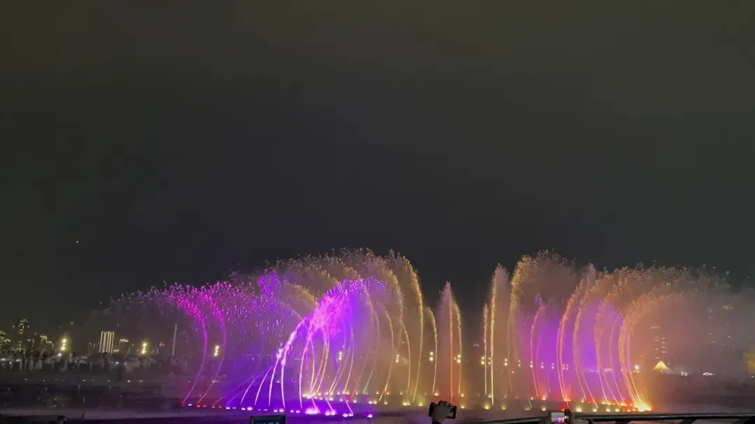 搜索发现这是亚洲最大的音乐喷泉群之一,主喷高度达128米,每天晚上都有两场表演。我们去的时候第一场刚结束,看了第二场。第一首歌是《一路生花》,配合着灯光和喷泉,确实很壮观。关键还是免费的,强烈推荐。