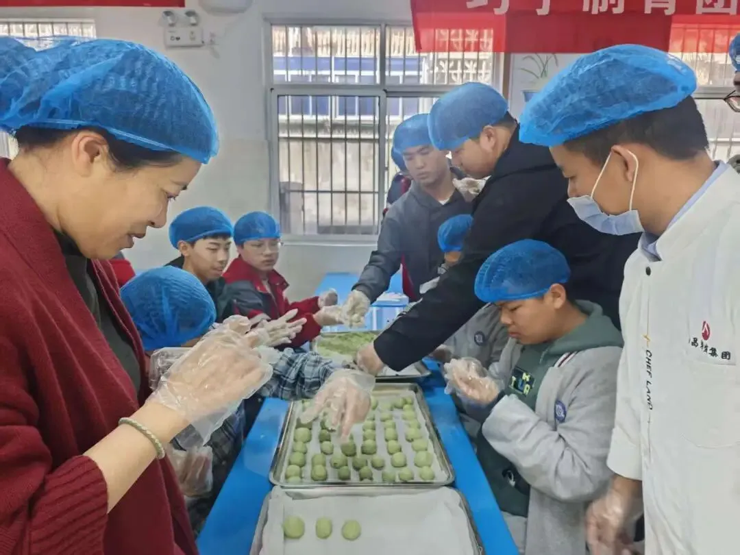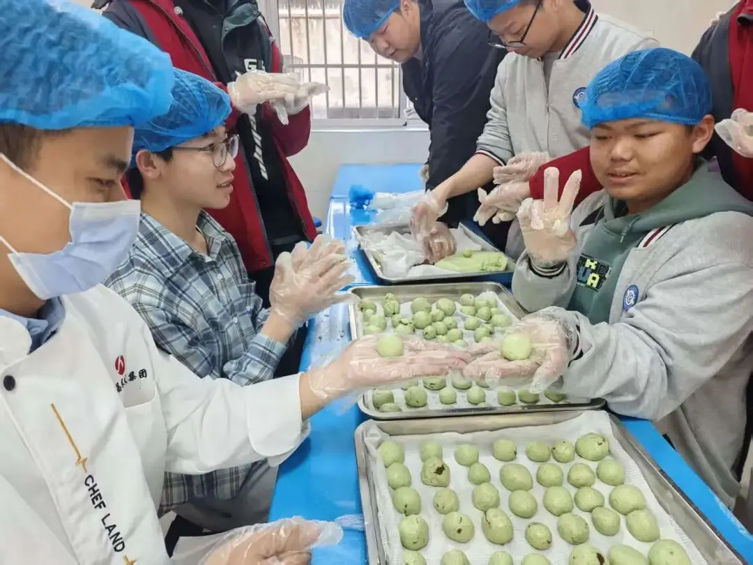 活动现场,食堂工作人员全程在岗值守,从揉面、包馅到塑形,一步步耐心示范指导,及时纠正操作细节,帮大家解锁 “零失败” 青团制作技巧。在专业的守护下,每一位同学都能安全、顺畅地完成属于自己的春日小食,在亲手实践中收获满满的成就感。