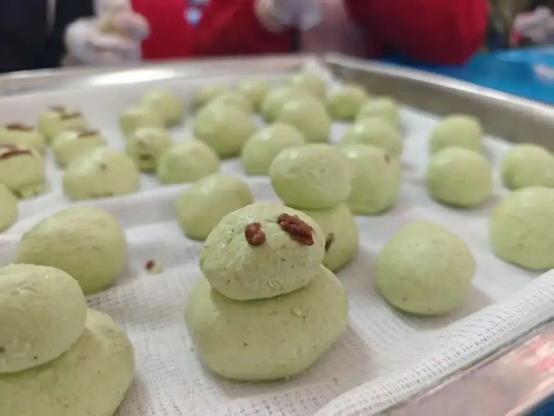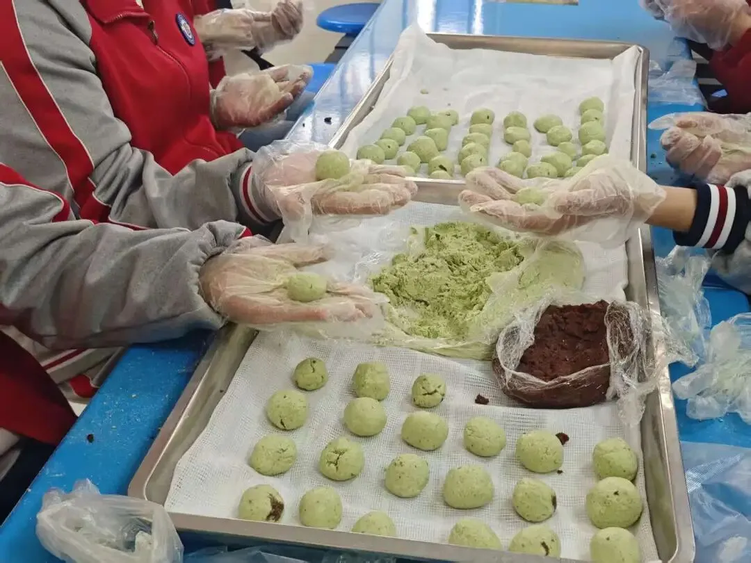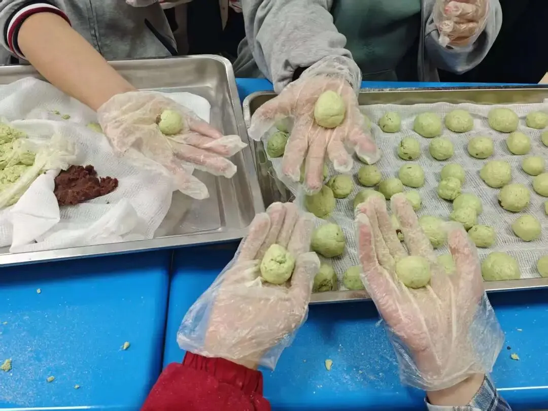 揉好的青团,被同学们赋予了满满的巧思。经典豆沙的绵密香甜,搭配饱满可爱的造型,蒸制后个个色泽翠绿、软糯诱人。当热气腾腾的青团出炉,咬下一口,满是春日的鲜醇与手作的温度,这场活动也收获了满溢的香气与同学们的笑脸。