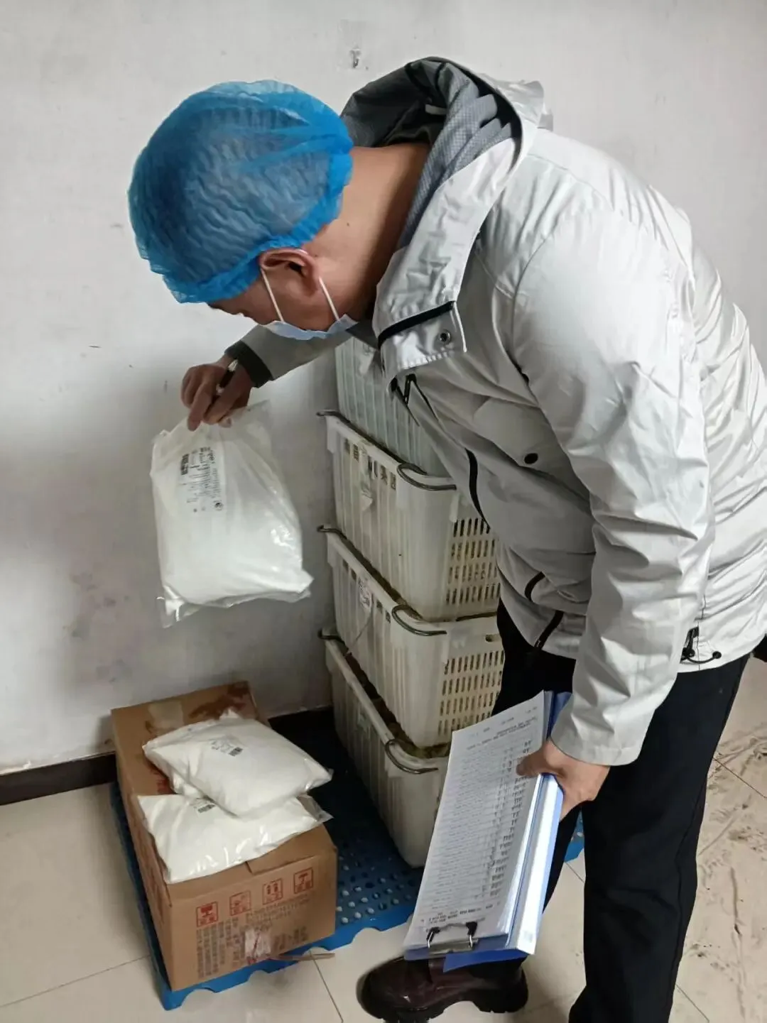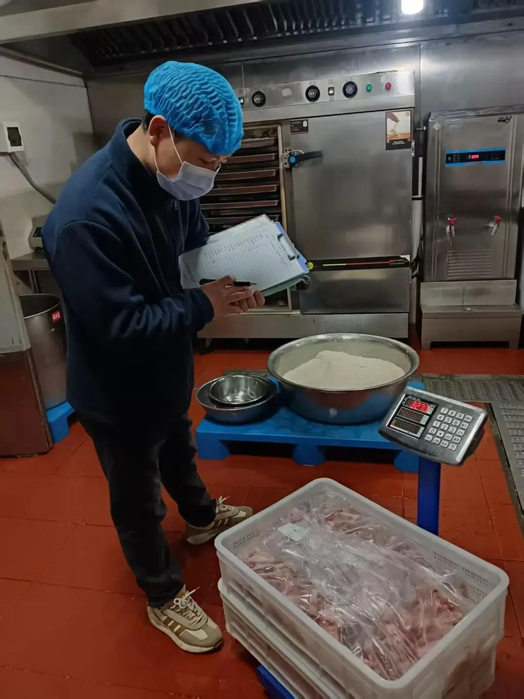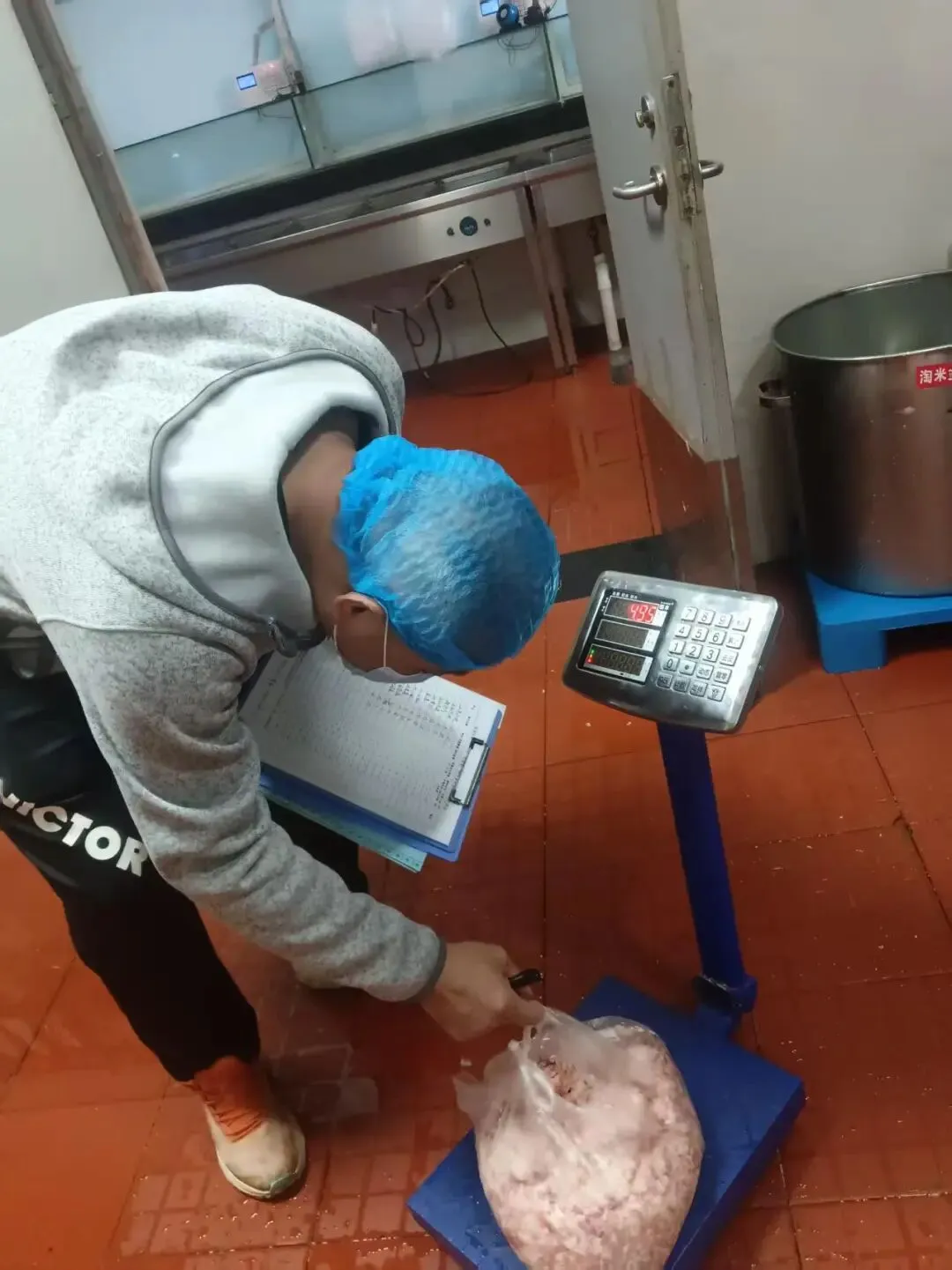 为保障师生饮食安全,十八中中层以上干部每天清晨前往食堂后厨,对食堂每日食材(菜类、重量等)进行验收,检查食材新鲜度和卫生情况。