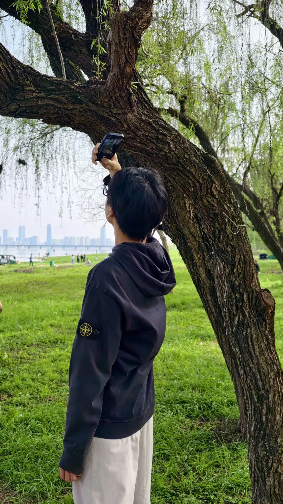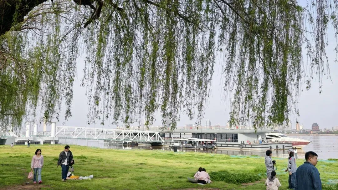 首站来到赣江边,杨柳依依。同行的九岁男孩鸡仔饼不由朗诵起贺知章的诗词:“碧玉妆成一树高,万条垂下绿丝绦,不知细叶谁裁出,二月春风似剪刀”。