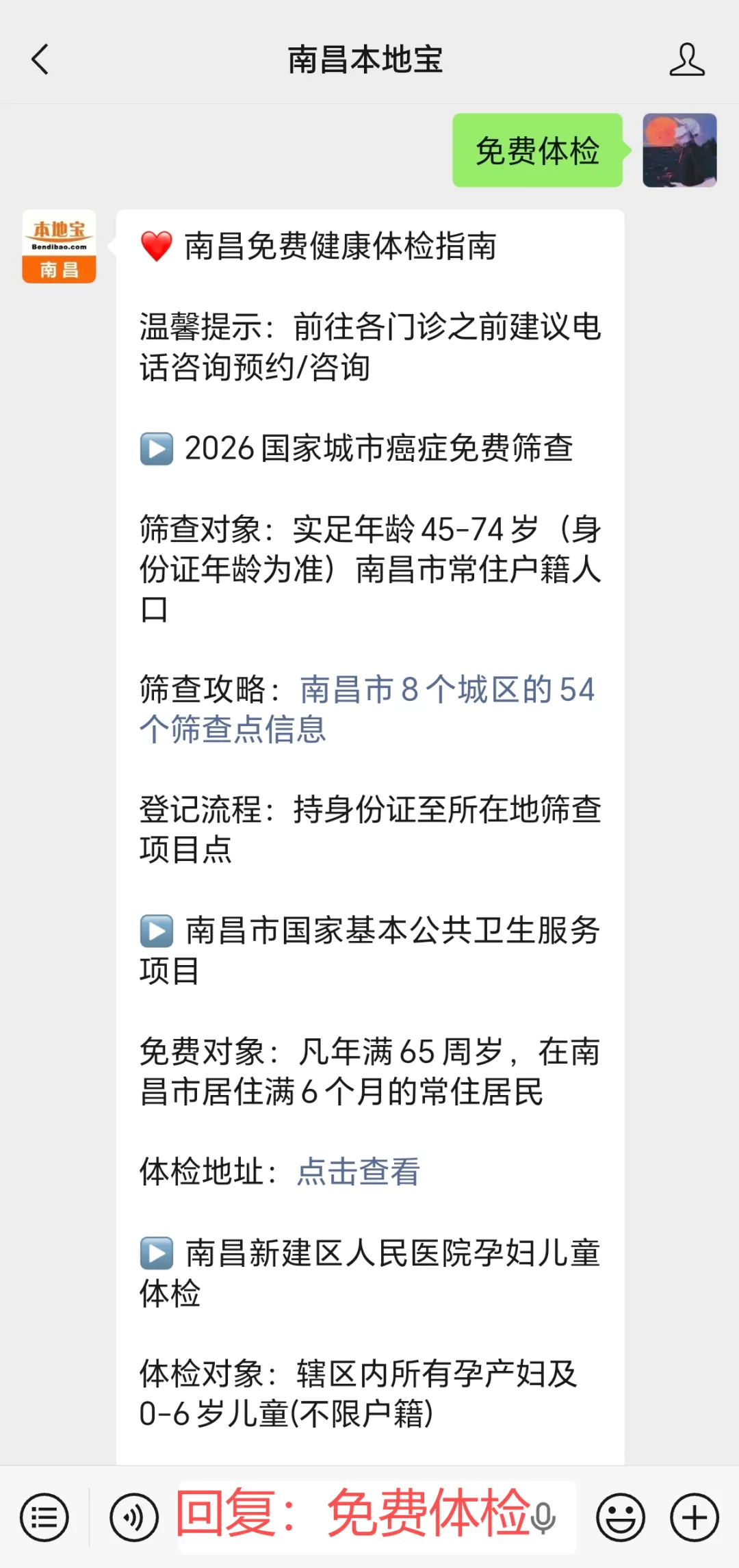 南昌本地宝推出非常多的功能,进入【南昌本地宝】公众号聊天对话框里,点击发消息,在对话框内输入并发送对应的【关键词】即可获取相关内容。