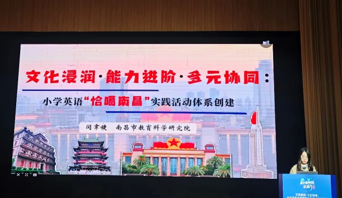 南昌市教育科学研究院的闵聿婕老师,带来了《文化浸润·能力进阶·多元协同:小学英语“哈噜南昌”实践活动体系创建》分享。从本土文化出发,让英语课堂成为了解家乡、表达家乡的窗口,让孩子们在趣味实践中爱上英语、读懂南昌。