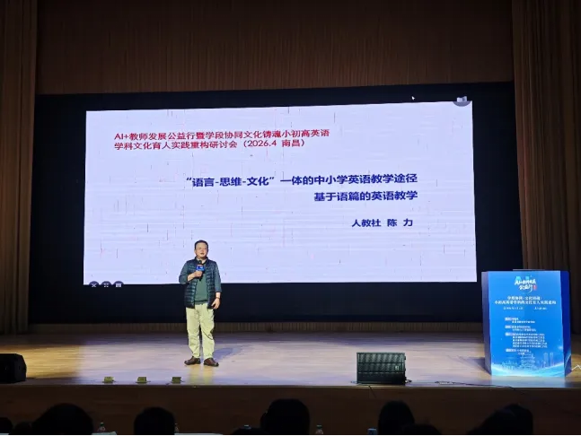 人民教育出版社的陈力专家,带来了高屋建瓴的专题分享。从课程理念到教学实践,深度解读了英语教学中语言能力、思维品质与文化意识的融合路径,为在场教师厘清了教学方向,提供了可落地的实践方法。