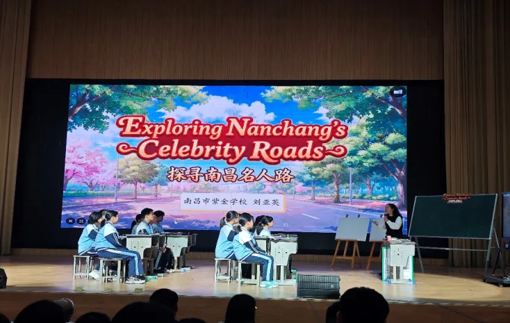 南昌市紫学校的刘亚英老师,带来了《“本土+”联教材:以童心为英语文化育人创新课例》。教学以南昌名人探究主题,将本土文化融入英语课堂,让学生在趣味探究中提升英语表达能力,实现文化认知与语言运用的双重培养,贴合小学阶段学生的认知特点,打造生活化、情境化的英语课堂。