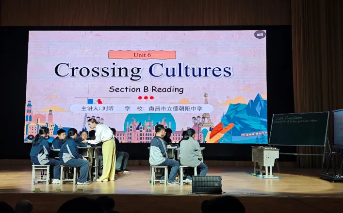 南昌市立德朝阳中学的刘昕老师,展示了《汇多元·承经典·叙传承:技术赋能下的主题阅读课例》。这是一堂来自八下英语Unit 6 Crossing Cultures Section B阅读课,以跨文化交际为核心,目标明确、设计递进,课前激活认知,读中依托邮件文本提炼法国习俗,读后对比中依托邮件引导学生尊重文化差异;课堂以“同则相亲,异则相敬”传递文化包容理念,课后结合春节文化分享和AI探究作业,融合阅读技巧训练与跨文化素养培养,实现语言学习与文化育人双目标。
