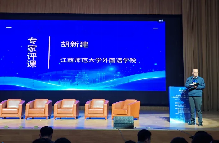 江西师范大学外国语学院的胡新建专家,对三堂课例进行了专业的点评,既肯定了课例中的亮点与巧思,也从教学目标、文化渗透、课堂互动等维度提出了针对性建议,为老师们的后续教学指明了优化方向。
