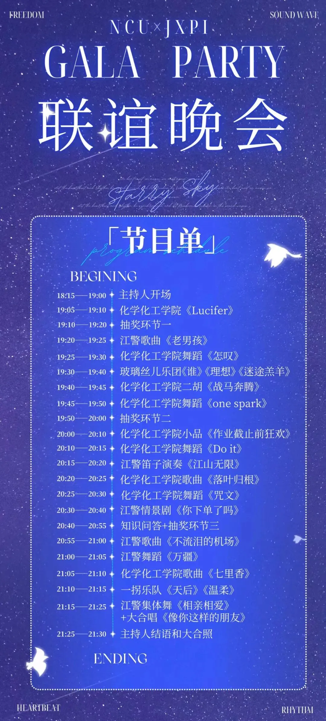 这场晚会,从来都不只是一场娱乐盛宴,更是一次打破边界的奇妙相遇。它让实验室里的严谨与训练场的热血在此交融,让不同专业、不同校园的我们,卸下身份的标签,成为彼此青春里的同路人。在这里,你可以结识志同道合的伙伴,听见不一样的故事,看见更广阔的世界,也能在交流中收获全新的视角与思考,让这场相遇,成为大学生涯里一笔珍贵的宝藏。