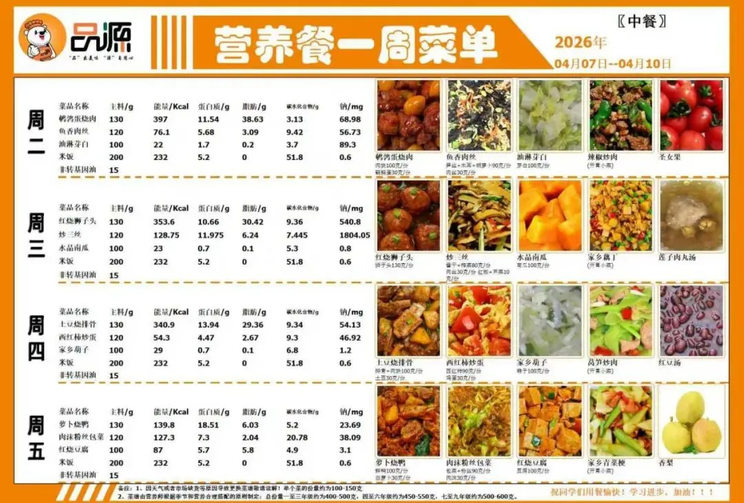 “食”刻守护,味暖人心——南昌市红谷滩区行知学校第六周午餐菜谱预告