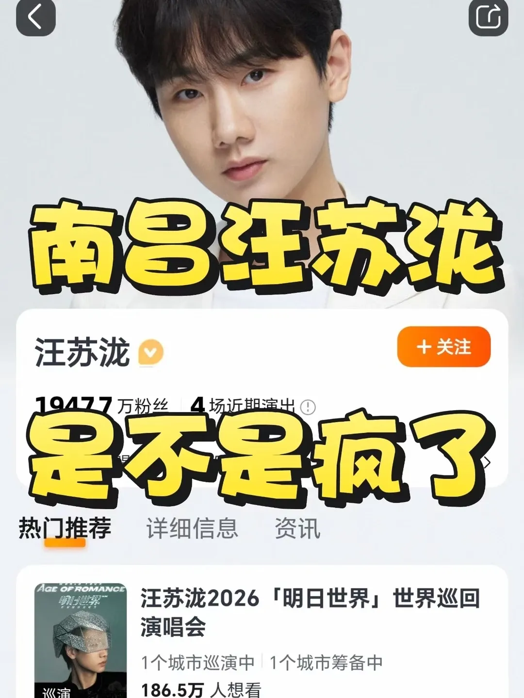 #汪苏泷 汪苏泷南昌站正式官宣❗真的疯了啊,原来泷泷24年就已经开始剧透了全新主题巡演《明日世界》即将开启新篇章,让我们拭目以待吧