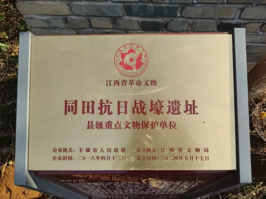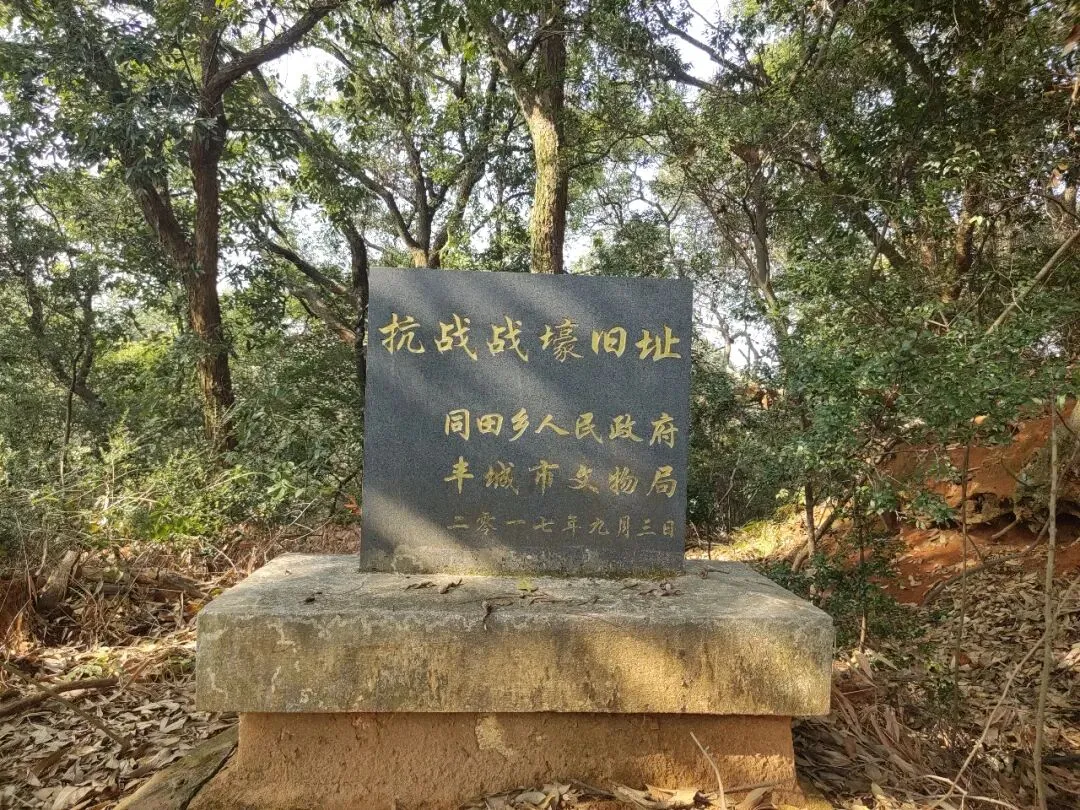 同田抗日战壕遗址位于江西省宜春市丰城市同田乡尧峰岭和案山,1939年南昌沦陷后,同田锦江以北,赣江以东,均为日占区边缘,曾一度成为中日两军对峙要地。最早驻在这里的国民党军有 26 师、105 师。后陆续调换防军、51师、57师、202师、新12师、预备六师、预备九师、省保安团、县自卫队等各种军队,都曾先后在同田驻扎,与日军拉锯战斗。目前,其中的案山战壕遗址已经打造成红色教育基地,山下修建起了一座胜倭亭,并立碑记叙了"同田保卫战"这段历史。同田抗日战壕为阻击日军侵犯同田乡时挖掘,军事戍守性质明显,保存较为完好,是中华民族顽强抵抗外族侵略的历史见证。