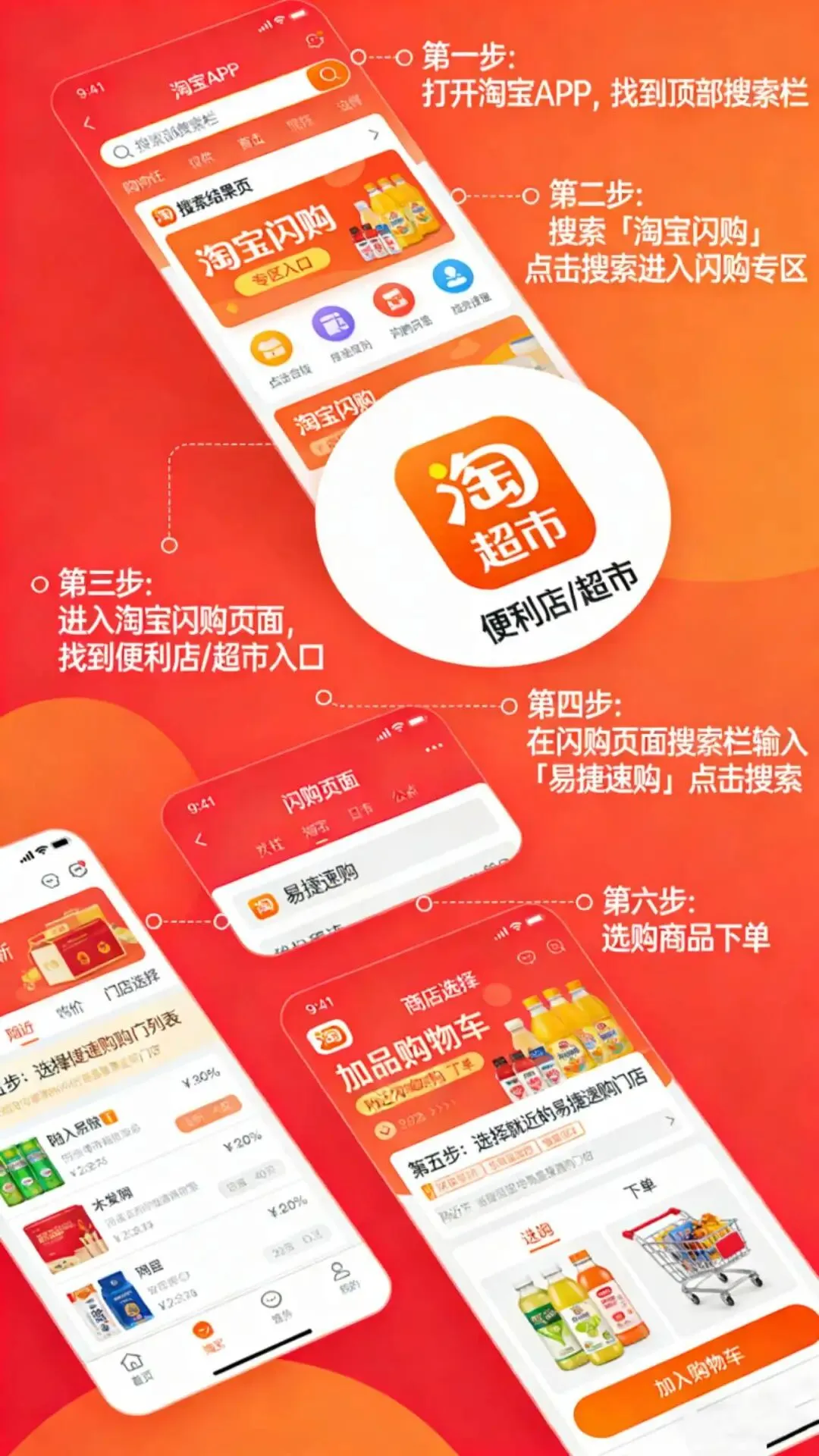 打开淘宝闪购/饿了么APP,3公里内急速送达,无论是居家补货、加班囤货、夜间应急,无需久等,易捷速购最快半小时送达。