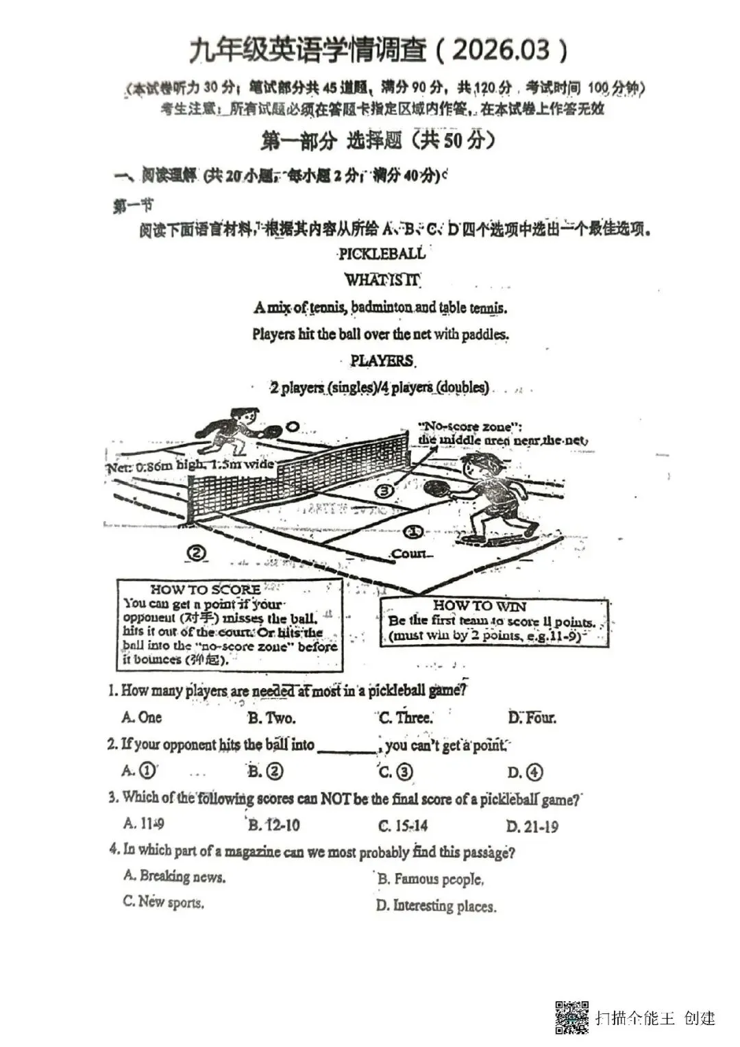 2026沈阳市中考英语听力口语考试样题+答案(一)(二)