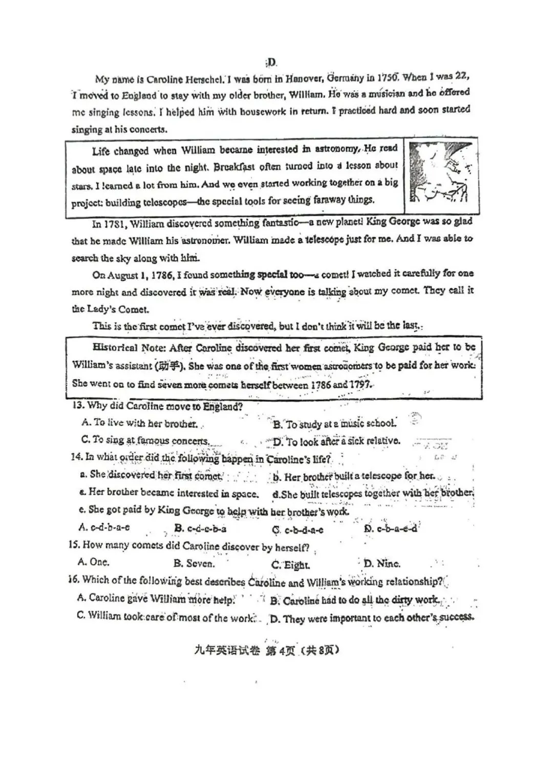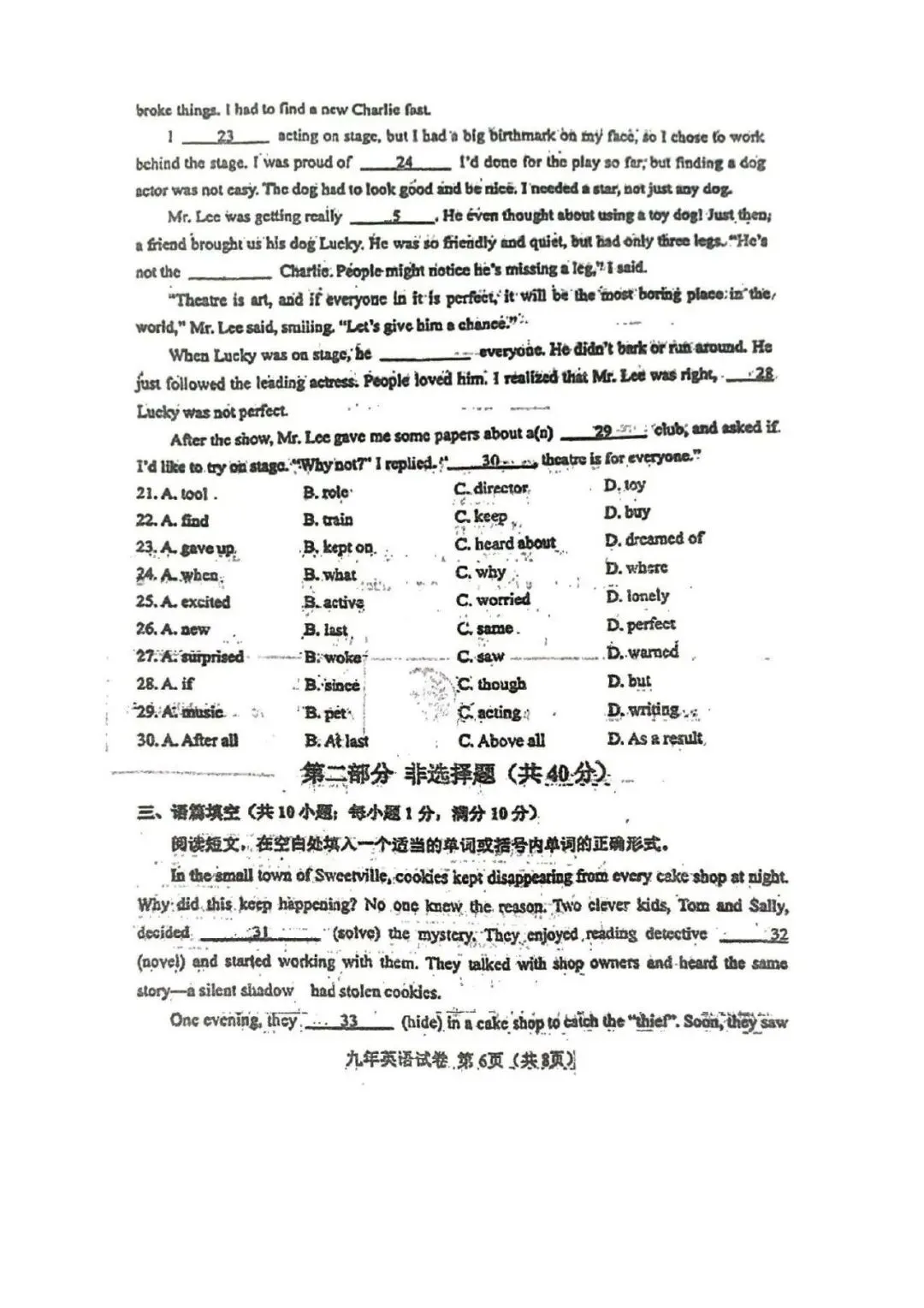 沈阳七中等名校协作体九下,期初联考试卷+答案