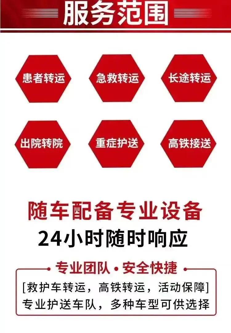 救护车出租转运服务'长途转运‘跨省转运’市内转运病人服务,针对新生儿,骨折病人,重症病人,危重病人,行动不便者复查,转院,转诊,跨省转运病人回家,我司车辆配有随车专业医护人,确保转运途中病人生命安全,以下是救护车转运预约和费用详解:24小时客服:4006171120 微信客服:18898641120 官方网站:www.120che.cn