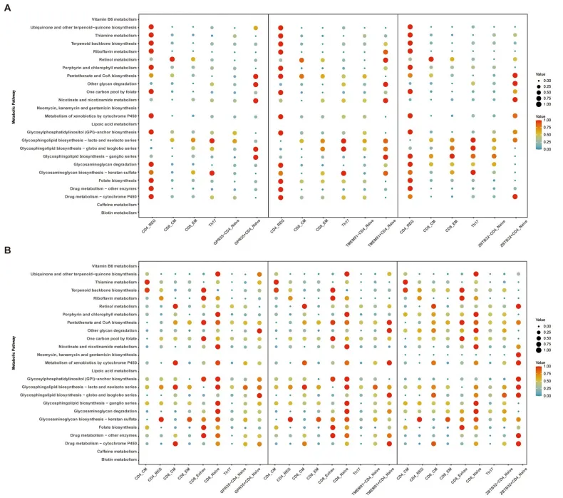 图5.CD4 + 初始 T 细胞通讯与代谢分析