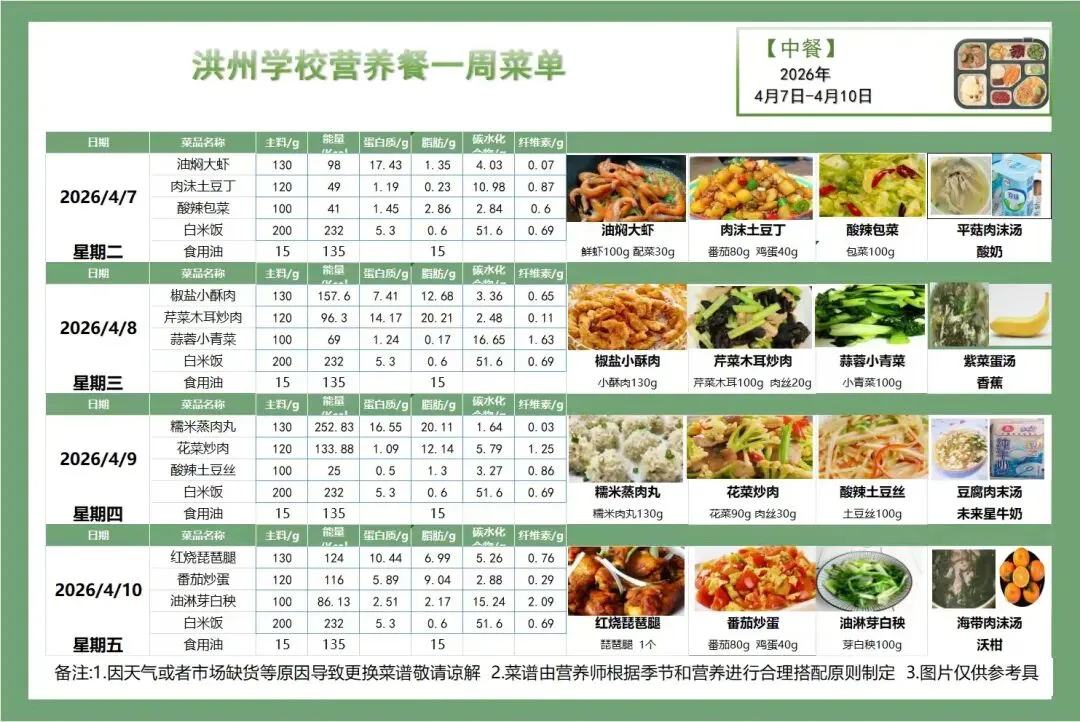 为了让您清晰了解孩子的在校饮食情况,现将本周营养食谱公布如下。