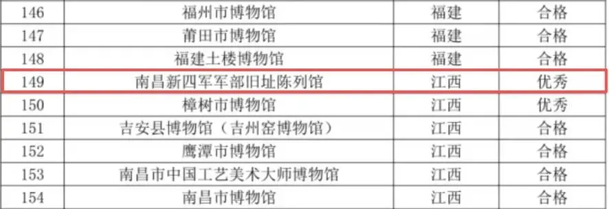 喜报!南昌新四军军部旧址陈列馆在第七次全国博物馆运行评估中获评优秀位列全省第一