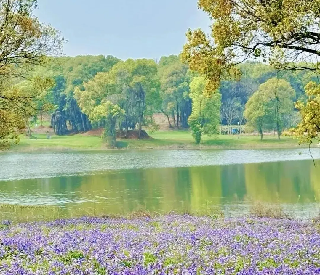 鱼目山公园的核心是湖泊和环湖步道。春季时,湖边开满了大片的紫色二月兰,与金黄的油菜花交织在一起,非常浪漫。你可以在疏林草坪上铺上野餐垫,享受一个惬意的春日午后。