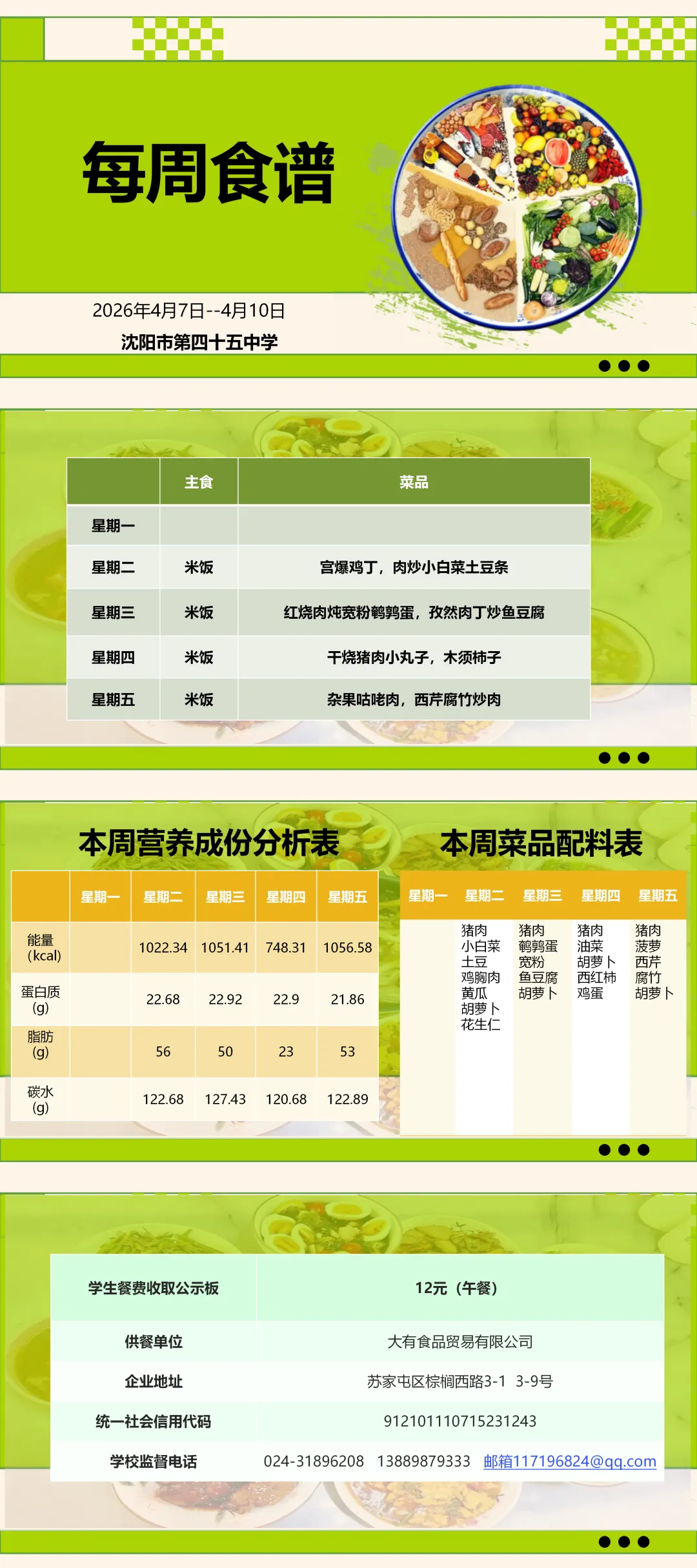 【南昌 满融】沈阳市第四十五中学2026年4月7日-4月10日食谱