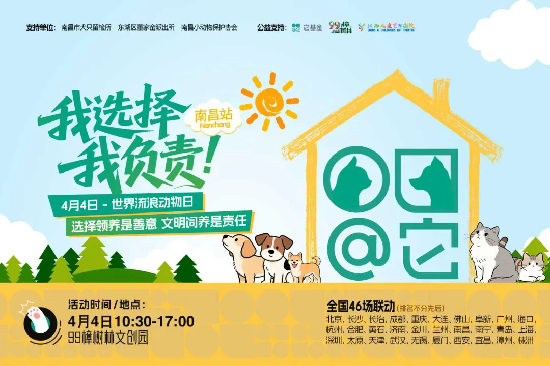 4月4日世界流浪动物日当天,“它基金4.4全国公益领养活动【南昌站】”顺利启幕。本次活动由南昌小动物保护协会与它基金联合主办,南昌市犬只留检所、东湖区董家窑派出所、贝贝宠物医院协办,99樟树林文创园、江西儿童艺术剧院等多家爱心单位提供支持,是全国32城46场联动活动的重要组成部分。