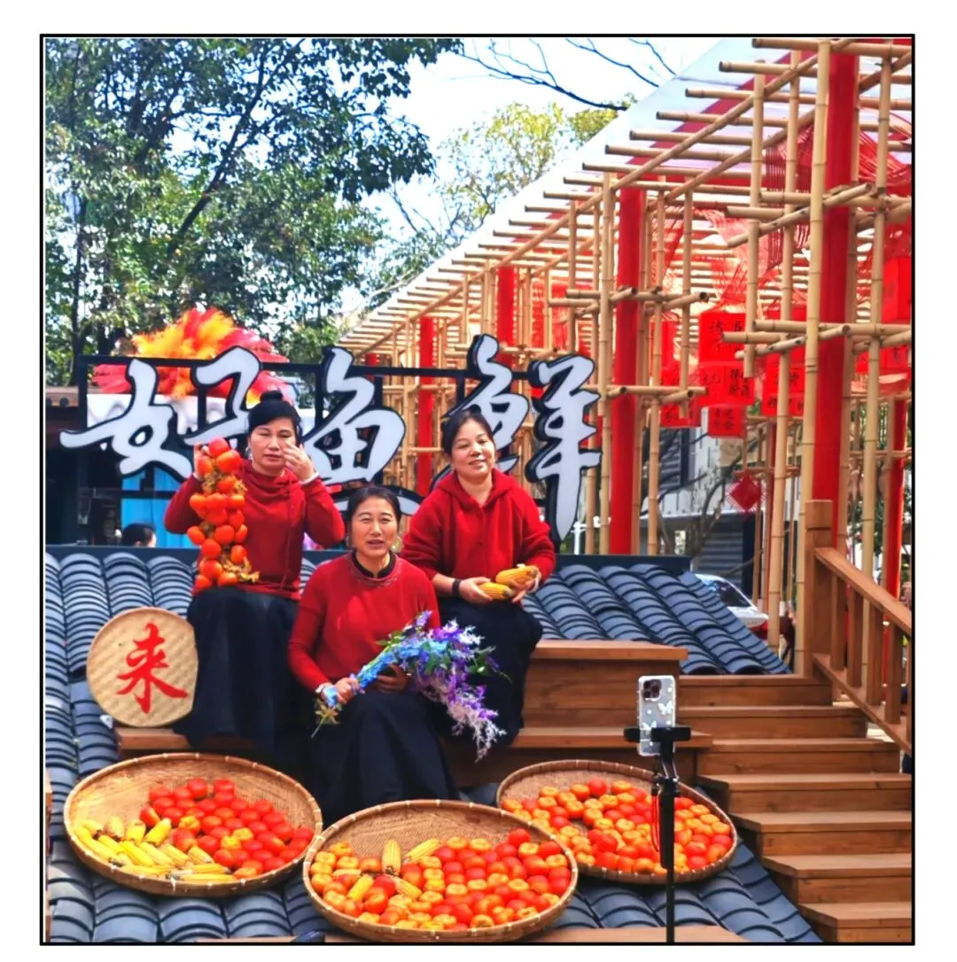 竹廊红灯笼,鲜果满竹筐,在鲟阳渔村的年味里,呈现江南水乡的烟火与欢颜。