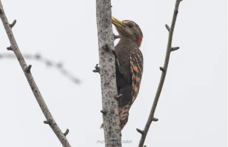 春节的南昌还带着料峭寒意,卧龙山公园的树林里却早已热闹起来。踩着湿漉漉的泥土往里走,忽然听见一阵极具穿透力的“笑声”——不是人声,而是黄嘴栗啄木鸟独有的魔性鸣叫,像极了藏在树影里的顽童在偷笑。