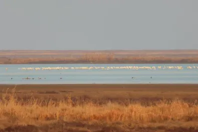 这里是候鸟的天堂,每年冬天,数十万只候鸟从西伯利亚、蒙古高原飞来,在此越冬。白腹鹞、白尾鹞贴着草甸低空游弋,翅膀掠过芦苇顶端,惊起一阵雀鸟;远处的雁群密密麻麻,时而在水面休憩,时而展翅起飞,形成壮观的“人字阵”。走在湿地边缘,一只雉鸡从芦苇丛中探出头来,警惕地盯着我,随后 “咯咯” 大叫着钻进了深处,留下一串清脆的声响。