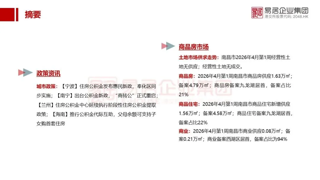 【2026年4月第1周】南昌市房地产市场周报