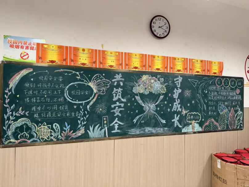 为进一步深化安全教育成效,让安全知识入脑入心,本周内,各年级、各班级陆续开展安全教育主题班会。班主任们围绕交通安全、消防安全、校园安全、食品安全、心理安全等重点内容,通过案例分析、互动问答、知识讲解等形式,向学生普及安全常识和应急避险技能,引导学生主动思考身边的安全隐患,学会自我保护,养成安全出行、文明守纪的良好习惯。同时,各班积极布置安全教育主题黑板报,同学们精心构思、认真创作,用文字、图画等形式传递安全理念,让黑板报成为校园里一道生动的“安全宣传风景线”,营造了“人人学安全、懂安全、守安全”的浓厚氛围。