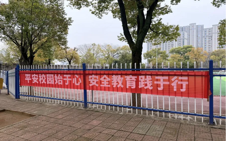 此外,学校在校园醒目位置悬挂安全教育宣传横幅,通过简洁有力的标语,时刻提醒全体师生重视安全、牢记安全。同时,学校安保人员对校园内进行了全面细致的检查,重点排查消防器材的完好性、消防通道的畅通性,对发现的问题及时登记、立即整改,从源头消除消防安全隐患,为校园安全筑牢坚实屏障,全力守护师生生命财产安全。