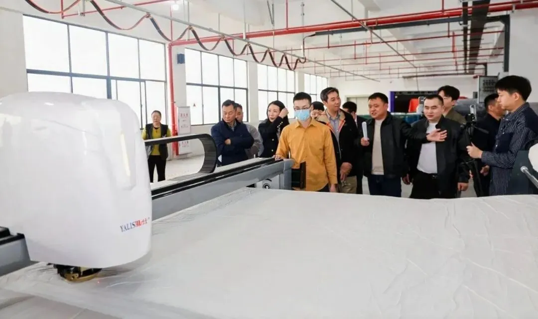 会后,在安徽雅力士智能科技总经理余志华引导下,与会企业代表走进江西荣章制衣厂,实地观摩从预缩、拉布、验布到智能裁剪的全程不间断生产演示。