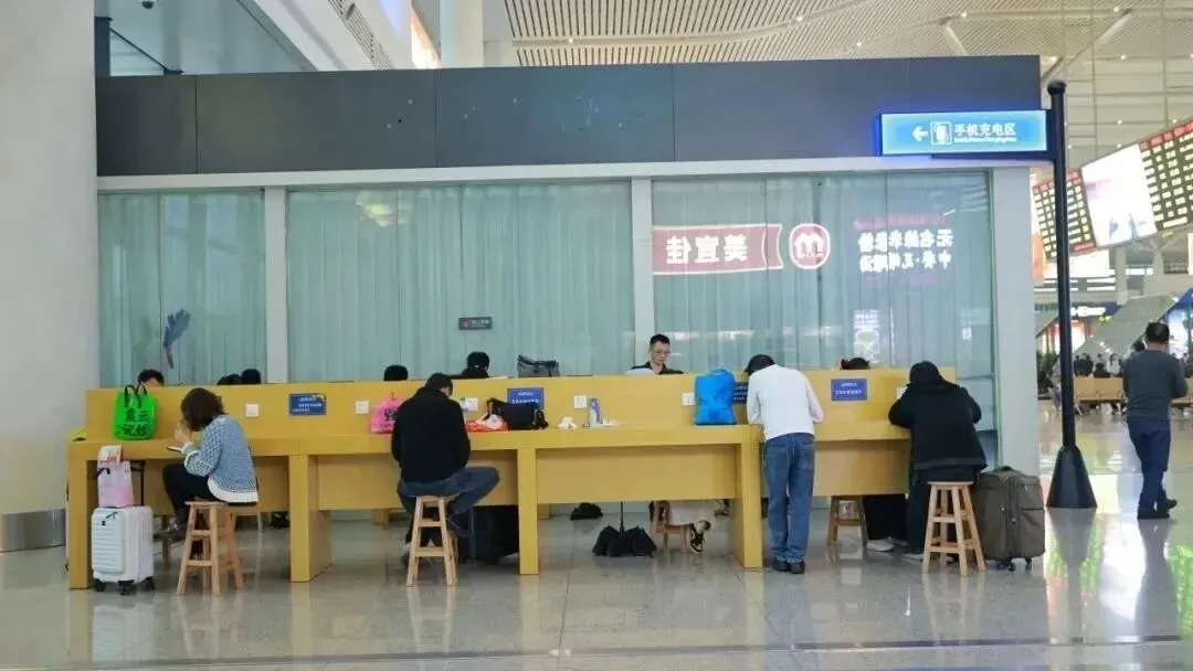 车站新增了军人母婴候车室,与原有候车室形成对角布局,实现了对不同区域旅客的就近服务。为了破解大家的出行“电量焦虑”,南昌西站候车室专门设置了四处充电区,共计144个充电面板,涵盖桌面、座椅式充电位,搭配五孔插座、USB/Type-C充电面板等多种类型,方便旅客各类设备就近充电。同时,车站还更换了1099张加厚座椅,让旅客久坐更舒适,大幅提升候车体验。