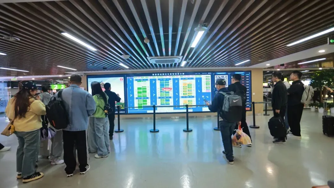 除了优质的候车服务,南昌西站在餐饮、接驳、行李服务等方面同样有诸多亮点。车站“江西小炒”热链餐厅,假期日均订餐量超过4500单。在餐饮服务上,假期期间还专门推出了合家欢家庭套餐,所有食材都是当天采购、当天制作,保证新鲜安全。旅客既可以在餐厅堂食,也可以通过12306APP或者列车畅行码提前下单,享受送餐到座服务。针对旅客接驳需求,南昌西站网约车智能化改造后,网约车日均单量从约7000单增长到15000单,平均每分钟有10余辆网约车开出。旅客打车的等待时间,从原来的平均8分钟缩短到现在的不到3分钟。司机接单后,旅客就能在大屏上找到对应的车牌号。除了通过信息大屏查看,旅客还可以输入车牌后四位进行查询,屏幕上会显示出车辆停泊位置。规范设置智能网约车专属停靠区域,实现网约车有序候乘、快速分流,避免拥堵。