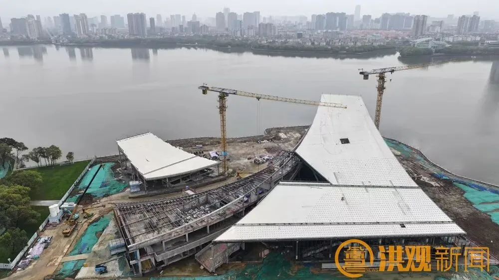 目前,位于南昌市青山湖西岸的南昌市图书馆新馆正加紧施工。图书馆主体结构和钢结构已经完成,外立面玻璃幕墙安装完成90%,报告厅主体结构已完成,计划2026年9月份基本完工。南昌市图书馆新馆建成后,将成为家门口的文化客厅、城市书香新地标。