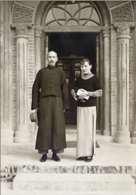 译文:蒋中正和宋美龄在南昌江西大旅行社合影Fu Bingchang拍摄于1927年University of Bristol - Historical Photographs of China reference number: Fu02-001. This portrait of Chiang Kai-shek (Jiang Jieshi) and his wife Soong Mei-ling was taken on the steps of the Jiangxi Grand Hotel, Nanchang. This building was key in the 1927 Nanchang Uprising. The building is now known as the Site Memorial of August 1 Nanchang Uprising or Nanchang August 1st Uprising Memorial Hall.