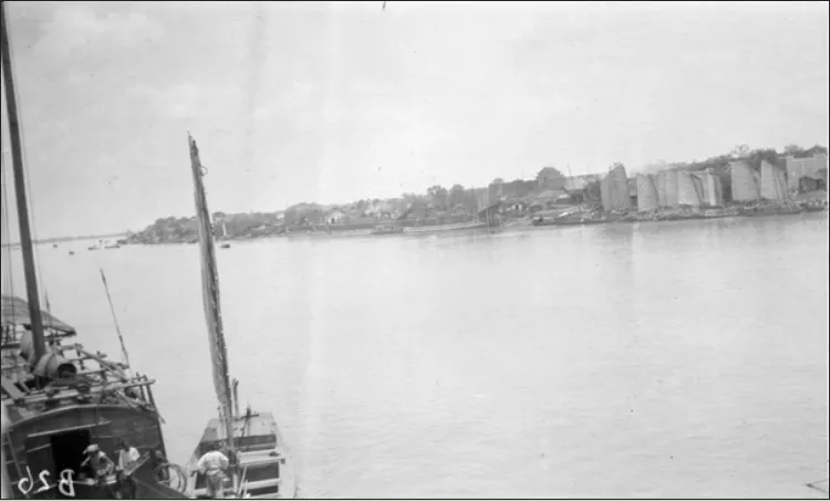 译文:江西的母亲河赣江 Nanchang approaching 南昌近郊 1906-1907年沃伦拍摄于南昌。Steamship ‘Kian’ in Nanchang (南昌)