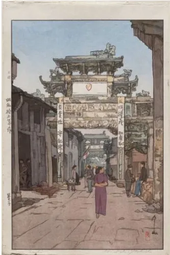 译文:1940年的江西赣北南康府星子县牌坊 日本人 yoshida hiroshi绘制。