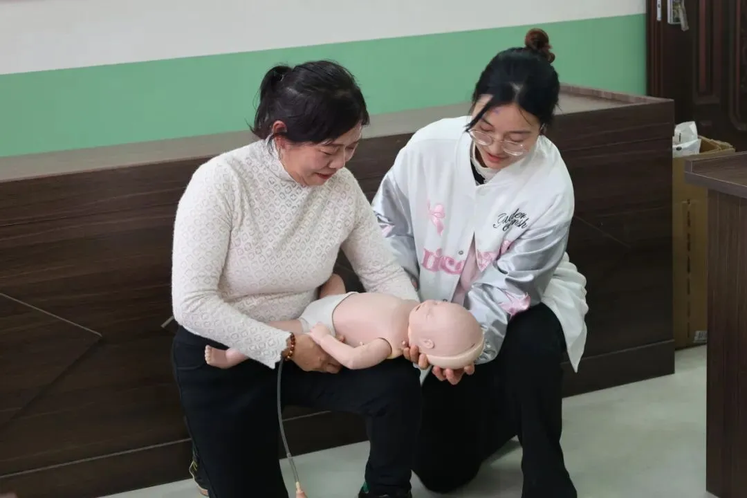活动现场,志愿者们耐心科普高血压日常防护与减压技巧,并开展婴儿式海姆立克急救法和心肺复苏(CPR)实操宣讲,考虑到老年群体接受度,志愿者们放慢语速、分步演示,逐一细致讲解,还邀请老人近距离观摩、上手模拟练习,确保大家听得懂、学得会、用得上,切实提升老人及其家人的应急自救互救能力,守护身边生命安全。