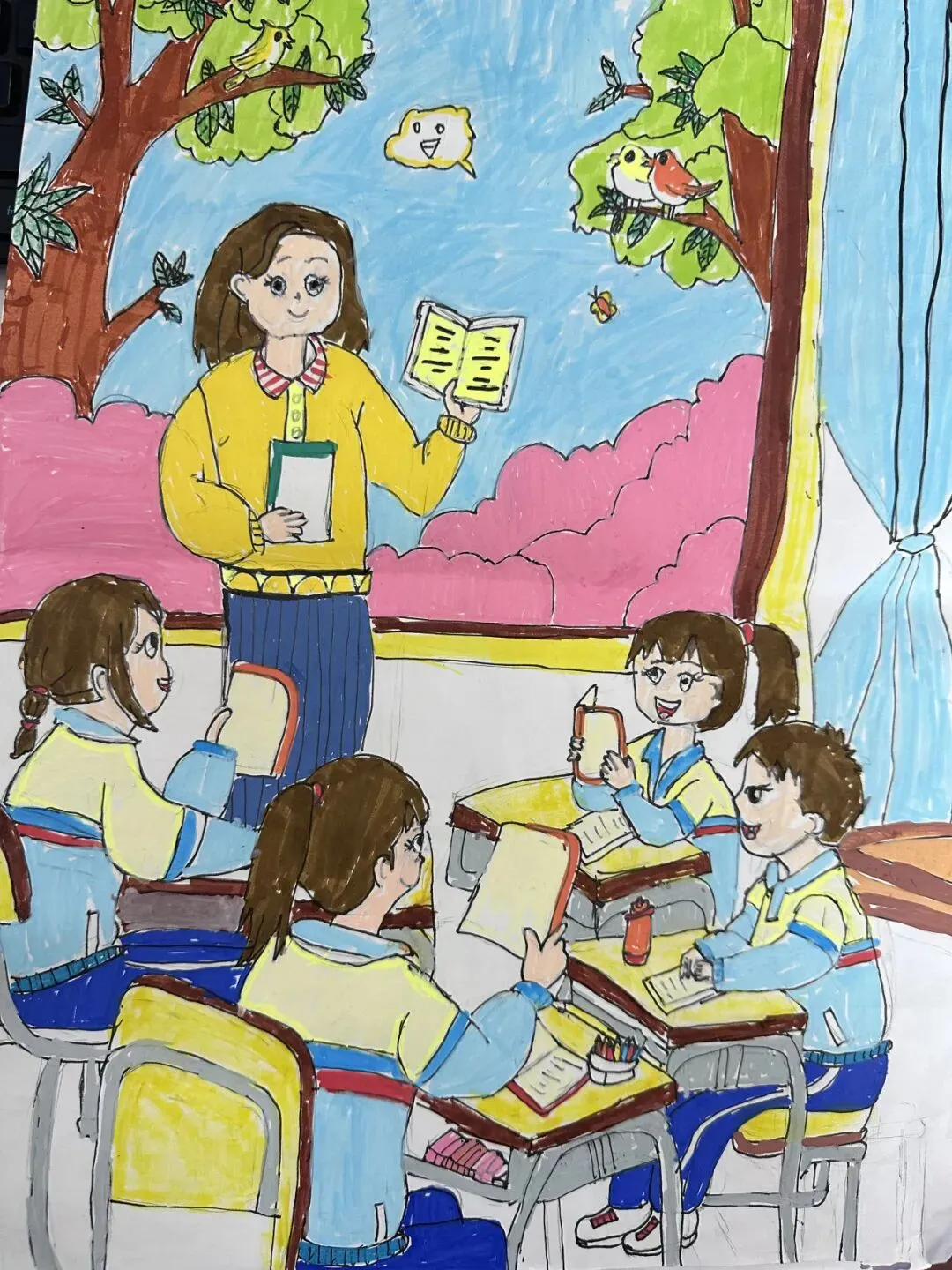 他们用多彩的画笔,畅想未来的美好家园,记录校园的温馨瞬间。一幅幅作品色彩明快、构图饱满,充满了天马行空的创意与对生活的热爱。