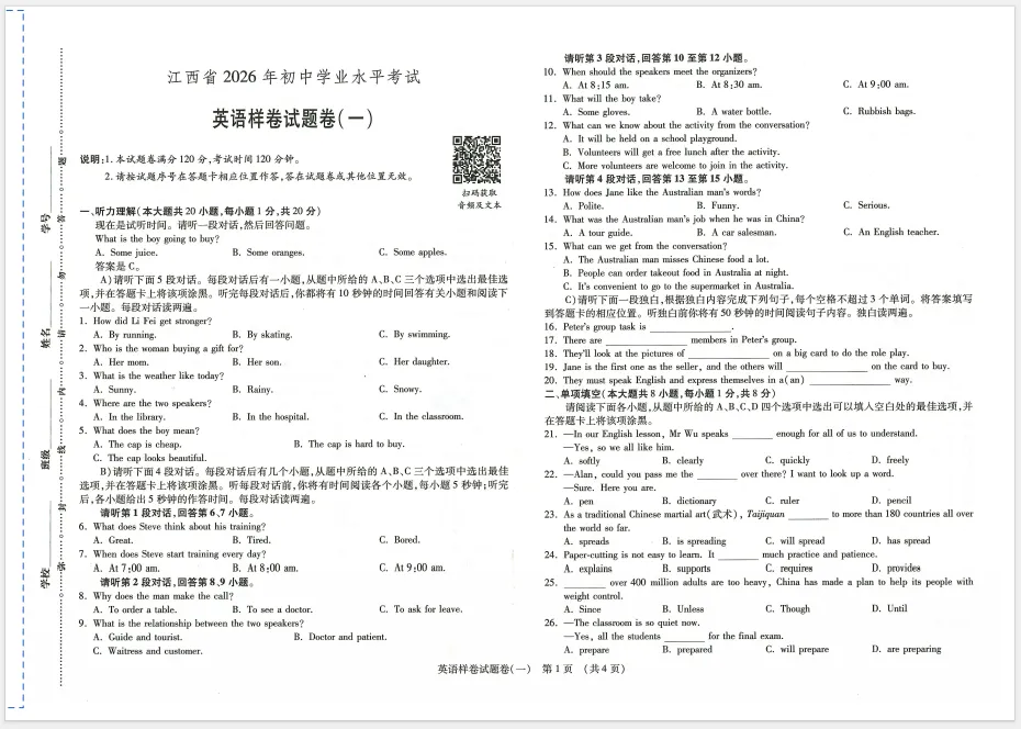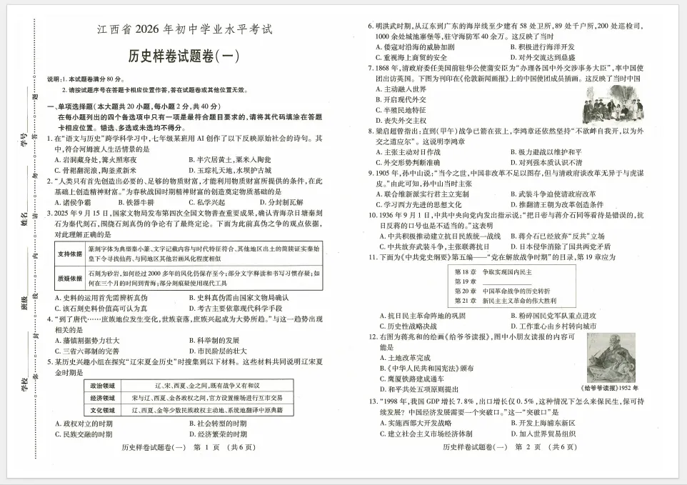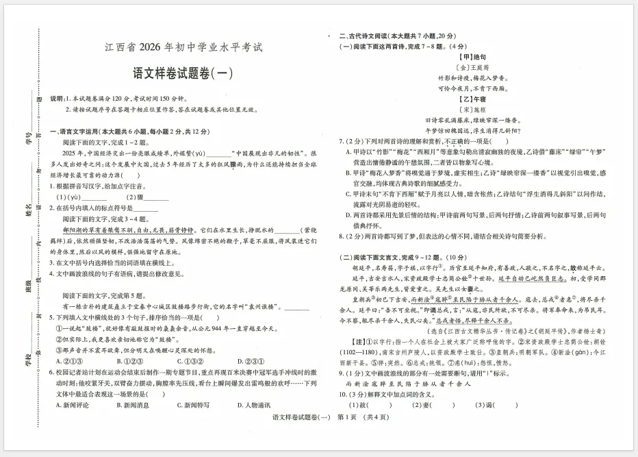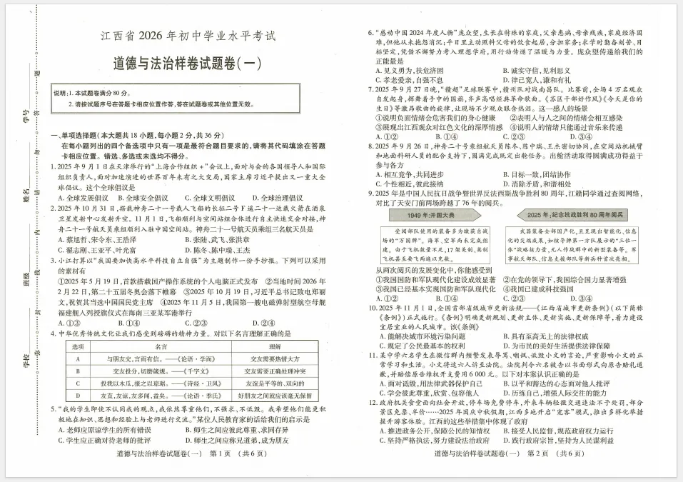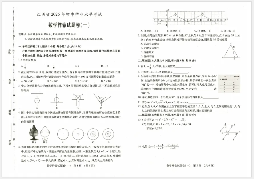 ③后台回复关键字【中考样卷】即可获取2026中考样卷+答案