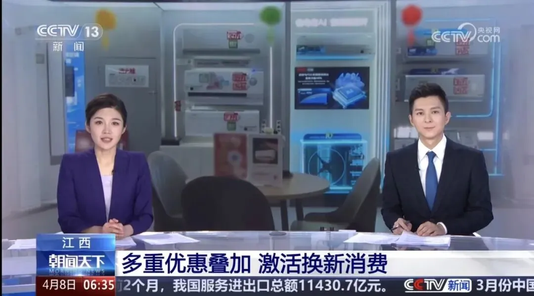 今天,央视《朝闻天下》报道:江西各地的家电卖场也迎来了新一轮的消费热潮。以旧换新政策落地后,各地商家同步推出多重福利“国补+套餐”优惠双享,有效激发了消费者的换新意愿。