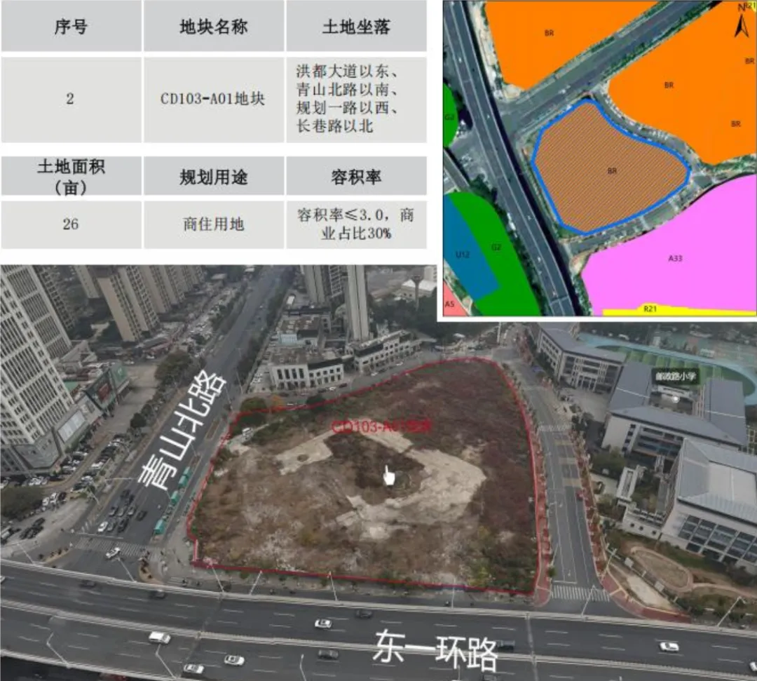 地块名称CY103-F05-2, CY103-G01地块位于抚生路以东、洪城路以北;面积12亩;土地用途为住宅或商住用地。