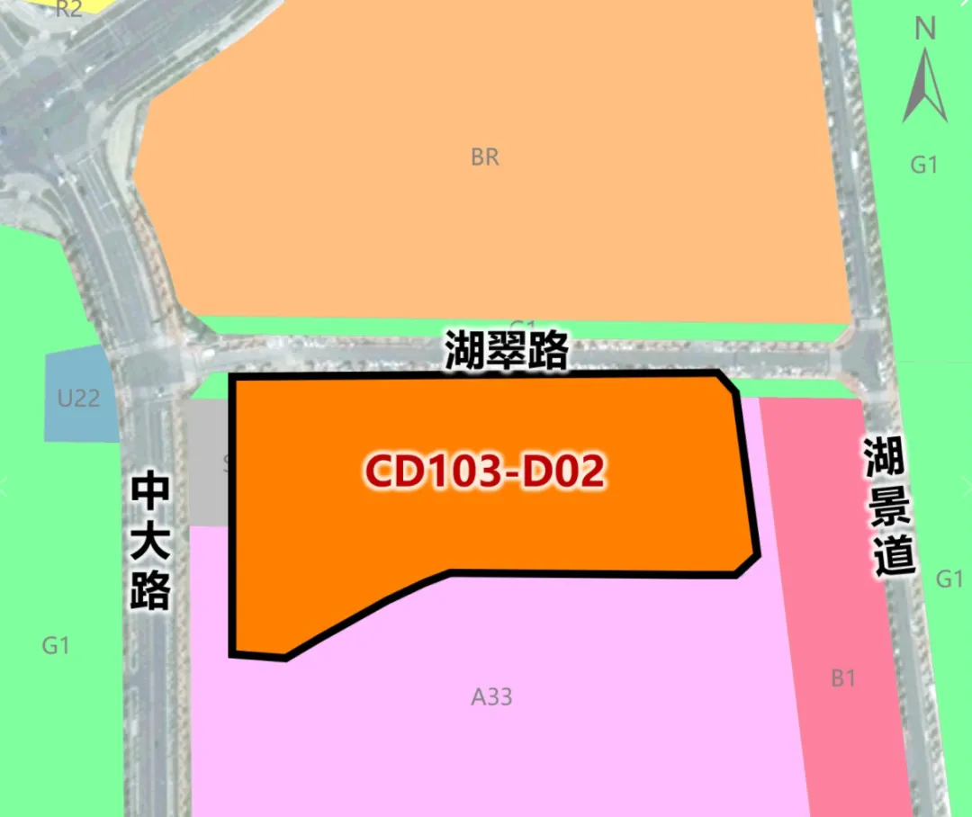 地块名称CD103-D02部分地块位于东湖区中大路以东、湖翠路以南;面积36亩;土地用途为住宅用地。用地面积36亩;容积率≤1.2-1.5。限高20米。