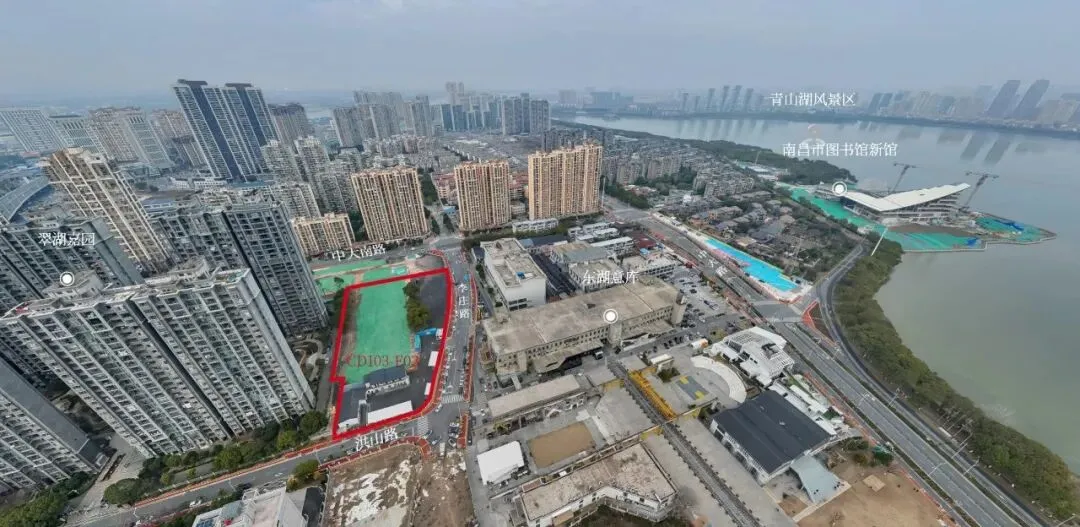 从区位上看,地块北侧近天骥俊园、君悦青山湖、谌家坊花园等;西侧紧邻翠湖嘉园;东侧卫招商东湖意库商业;原为江西省外贸储运公司仓库。周边交通、学校、商业都比较完备,同时由于东侧以低密建筑为主,未来地上住宅也能观青山湖,包括在建的市图书馆新馆。