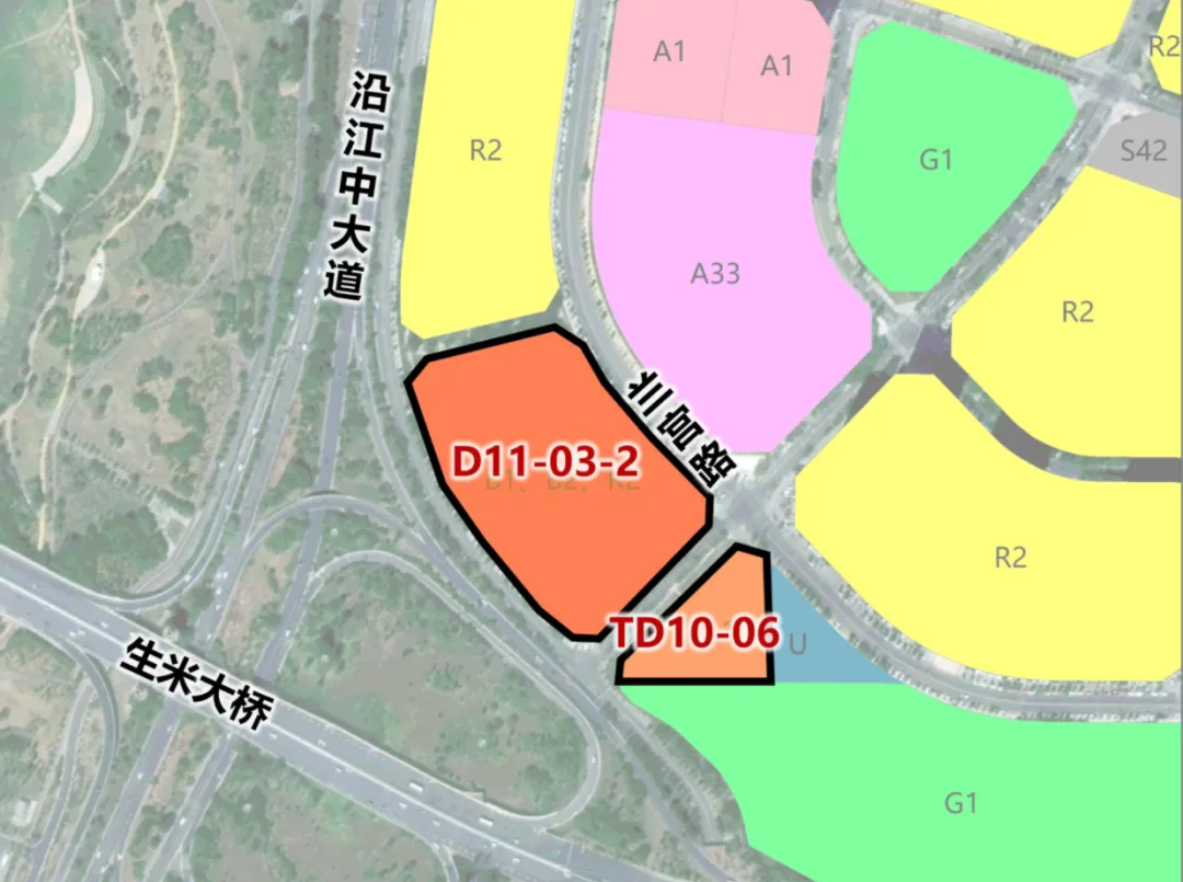 地块名称D11-03-2, TD10-06地块位于沿江中大道以东、朝农街以南、兰宫路以西;面积53亩;土地用途为商住用地。
