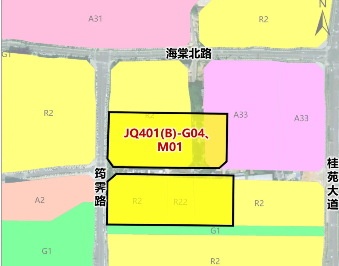 JQ401(B)-G04、JQ401(B)-M01地块位于筠霁路以东、规划路以北、海棠北路以南;面积为52亩;土地用途住宅用地。容积率≤1.8(暂定)。