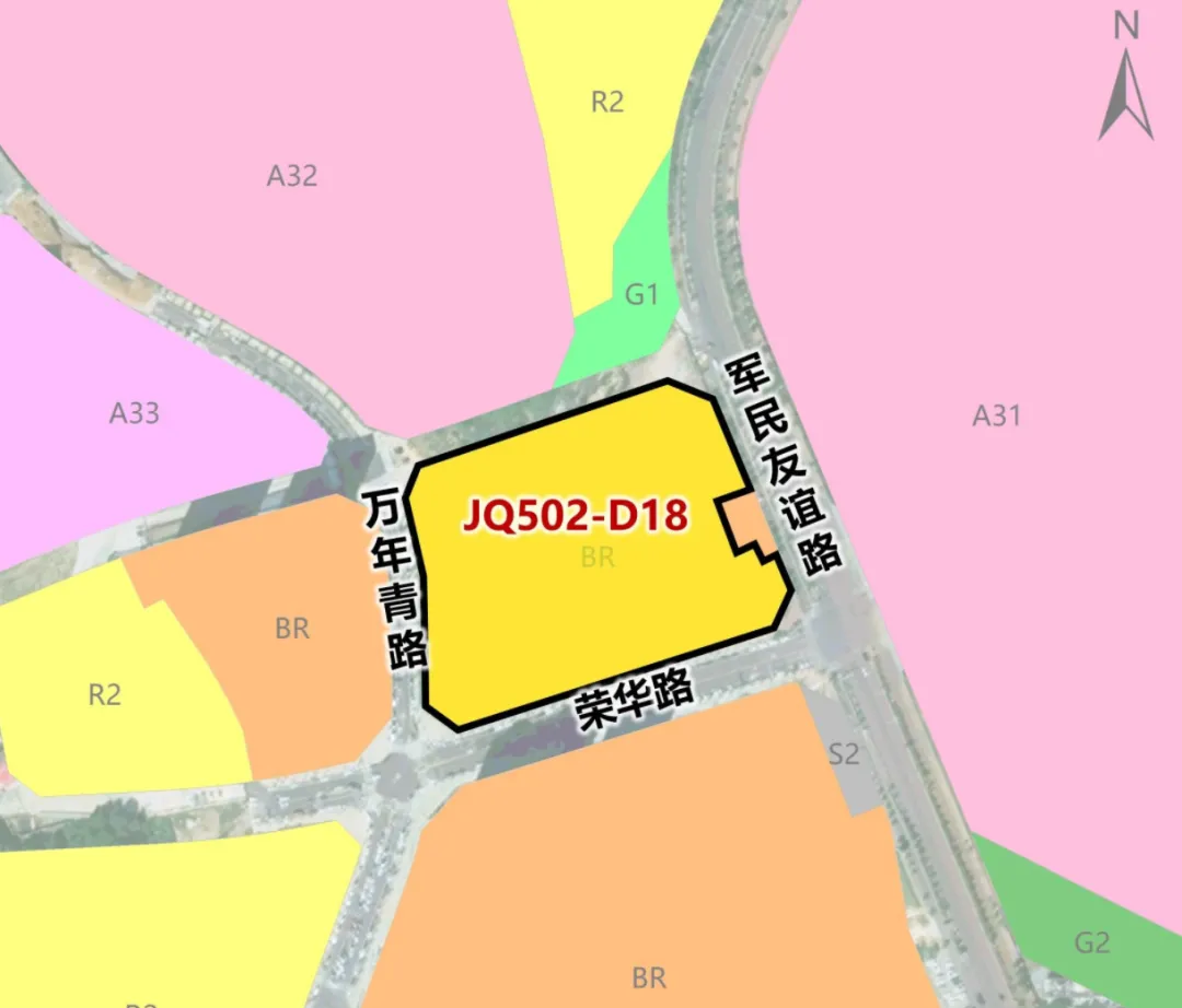 JQ502-D18地块位于万年青路以东、鄂山路以南、孔目湖路以西、荣华路以北;面积为43亩;土地用途住宅用地。