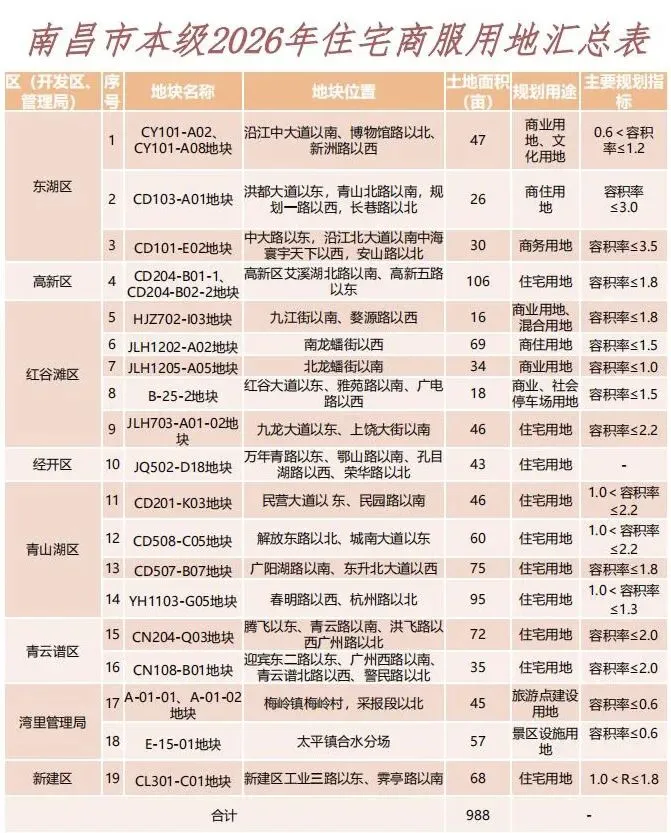 而根据另一份今年住宅商服用地汇总表格来看,涉及用地合计为998亩。