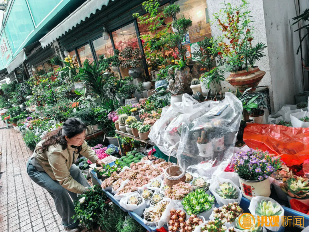 “春风拂面,繁花入梦。”昨日上午,记者走进东湖区千花伴花鸟市场,一股混合着青草芬芳与鲜花甜香的气息扑面而来,各色鲜花绿植层层叠叠铺展开来,形成一片绚烂的海洋,将春日的生机与浪漫尽数倾泻。众多市民或独自踱步,或三五结伴,穿梭在一个个摆满盆栽的摊位间,目光在各色花草间流连。大家弯腰端详、轻嗅花香,不时与摊主交流养护心得,精心挑选着适合自己的“春日限定”。